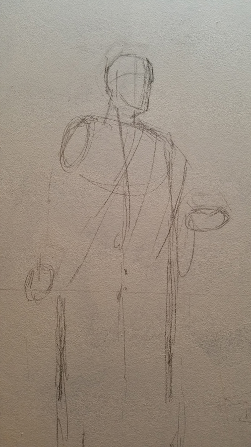 With the drawing to my satisfaction, I will leave it overnight and come back tomorrow with some Acrylic matte medium to seal the drawing and begin painting.
